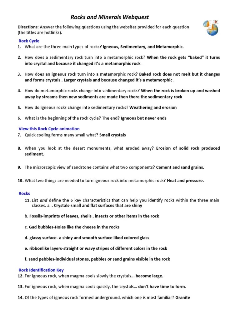The end product of the weathering of gabbro or basalt rocks is a solution of igneous rocks worksheet. When magma cools and hardens, it forms.